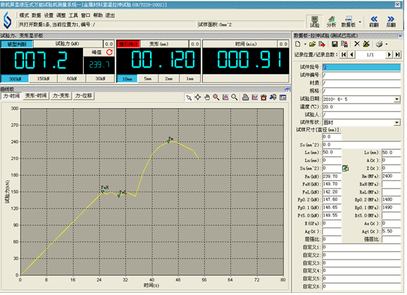 ◆ 采用人机交互方式分析计算测试材料的机械性能指标,试验结束时自动计算弹性模量、屈服强度、非比例伸长应力等,在自动分析的基础上,还可以人工修正分析结果,提高分析的准确性。